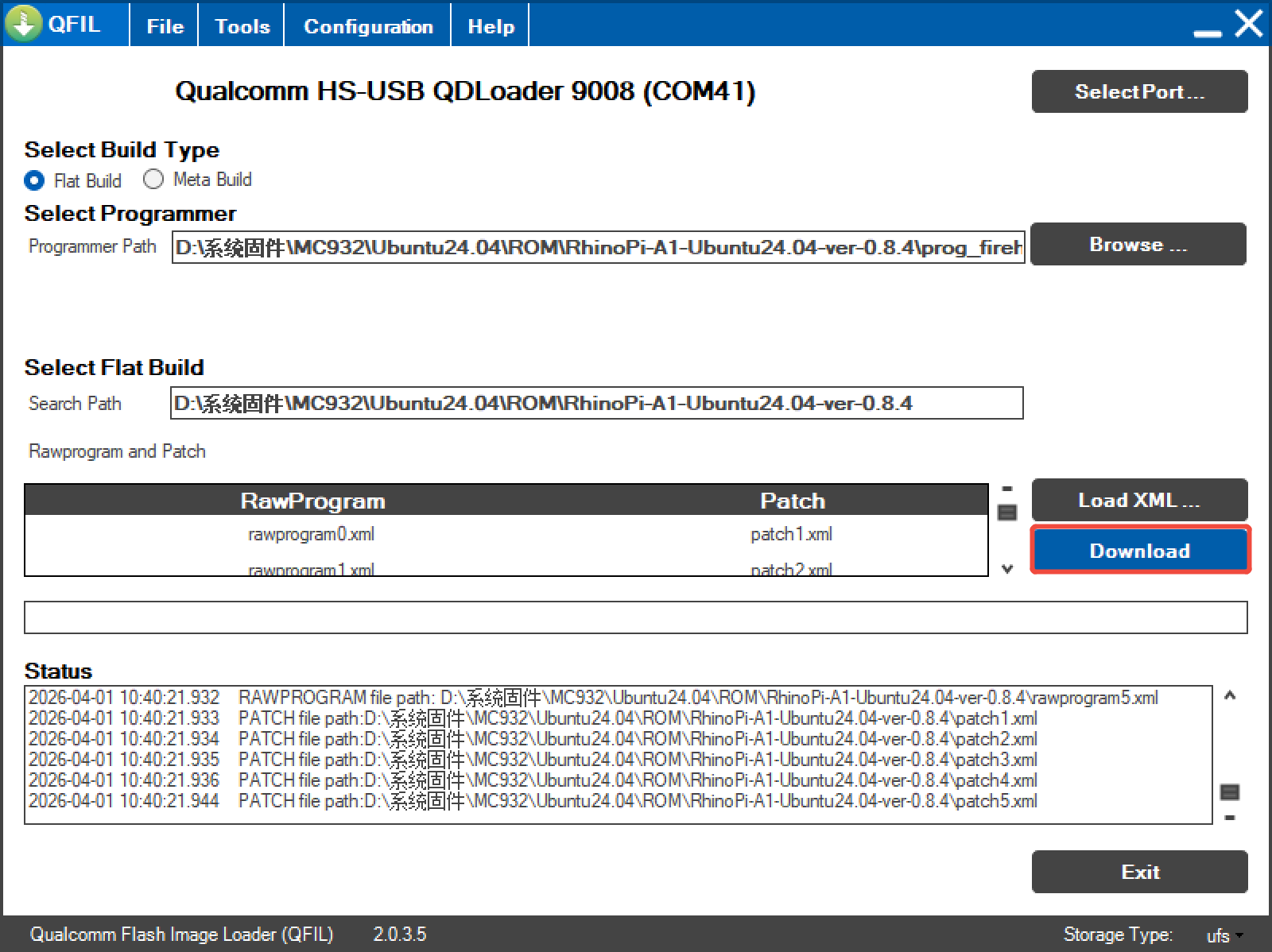 Select Flat Build项,点击下方的Load XML...,选择刷机 xml 文件。 - 在弹出的窗口,选择所有文件,点击