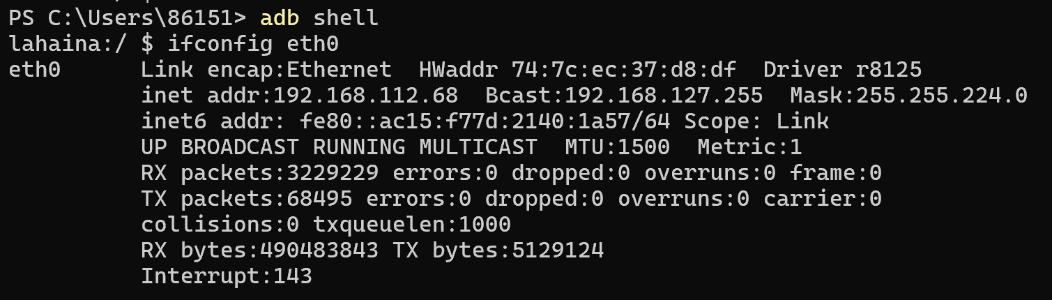 ifconfig eth0可以看到如下输出: