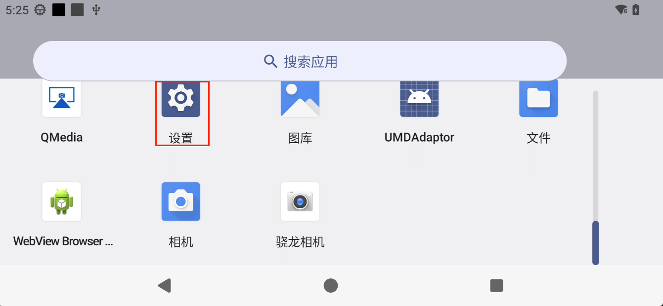 设置按钮,打开 Android 系统设置界面。
